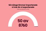 Även om Sverige exporterar el de flesta av årets timmar så är ledningarna till grannländerna vår livlina de få timmar på året då den svenska elproduktionen inte räcker till. 2025 hade vi nettoimport av el under 50 timmar, fördelade på 12 olika dygn. Flest importtimmar under ett dygn hade vi den 19 november 2025.