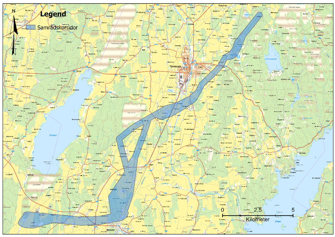 (.png) Öppnas i nytt fönsterÖversiktskarta över samrådskorridoren. Klicka på bilden för större version. Mer detaljerade kartor finns under sidan Dokument och kartor