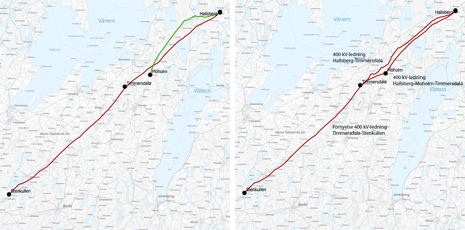 Det görs genom att två 400 kV-ledningar ska byggas mellan stationerna Hallsberg och Timmersdala, varav den ena ska anslutas till en ny station i Moholm. I samband med genomförandet av projekten kan de befintliga ledningarna rivas. Det innebär i praktiken att dagens 400 kV-ledning och 220 kV-ledning kommer att ersättas med två nya moderna 400 kV-ledningar. Svenska kraftnät planerar även att förnya den befintliga 400 kV-ledning som går mellan Timmersdala och Stenkullen.