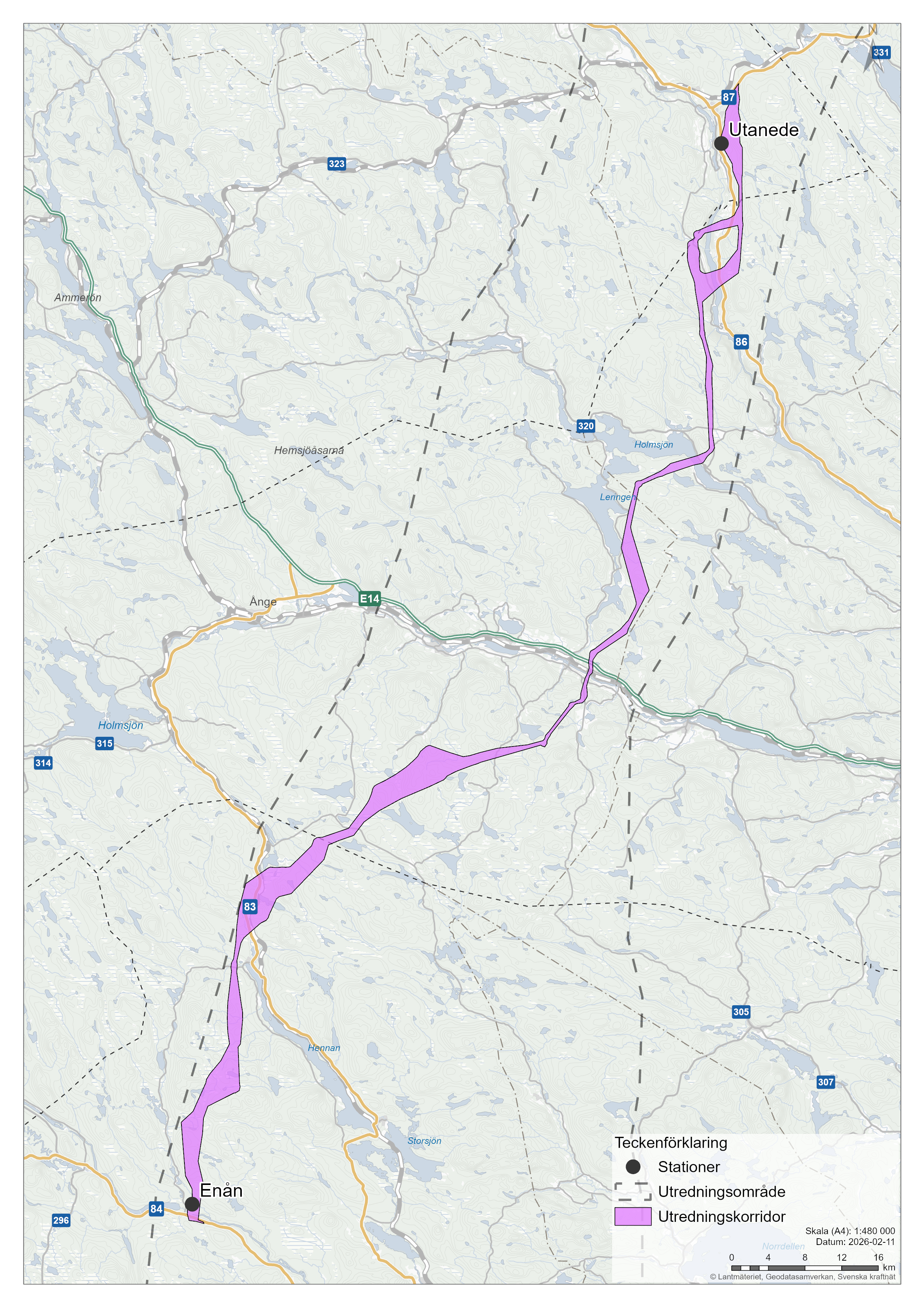Svenska kraftnät planerar två nya parallellgående 400 kV-luftledningar mellan stamnätsstation Utanede i Ragunda kommun och station Enån i Ljusdals kommun. Förnyelsen gör vi för att stärka upp stamnätet och avveckla befintliga ledningar som uppnått slutet av sin tekniska livslängd.