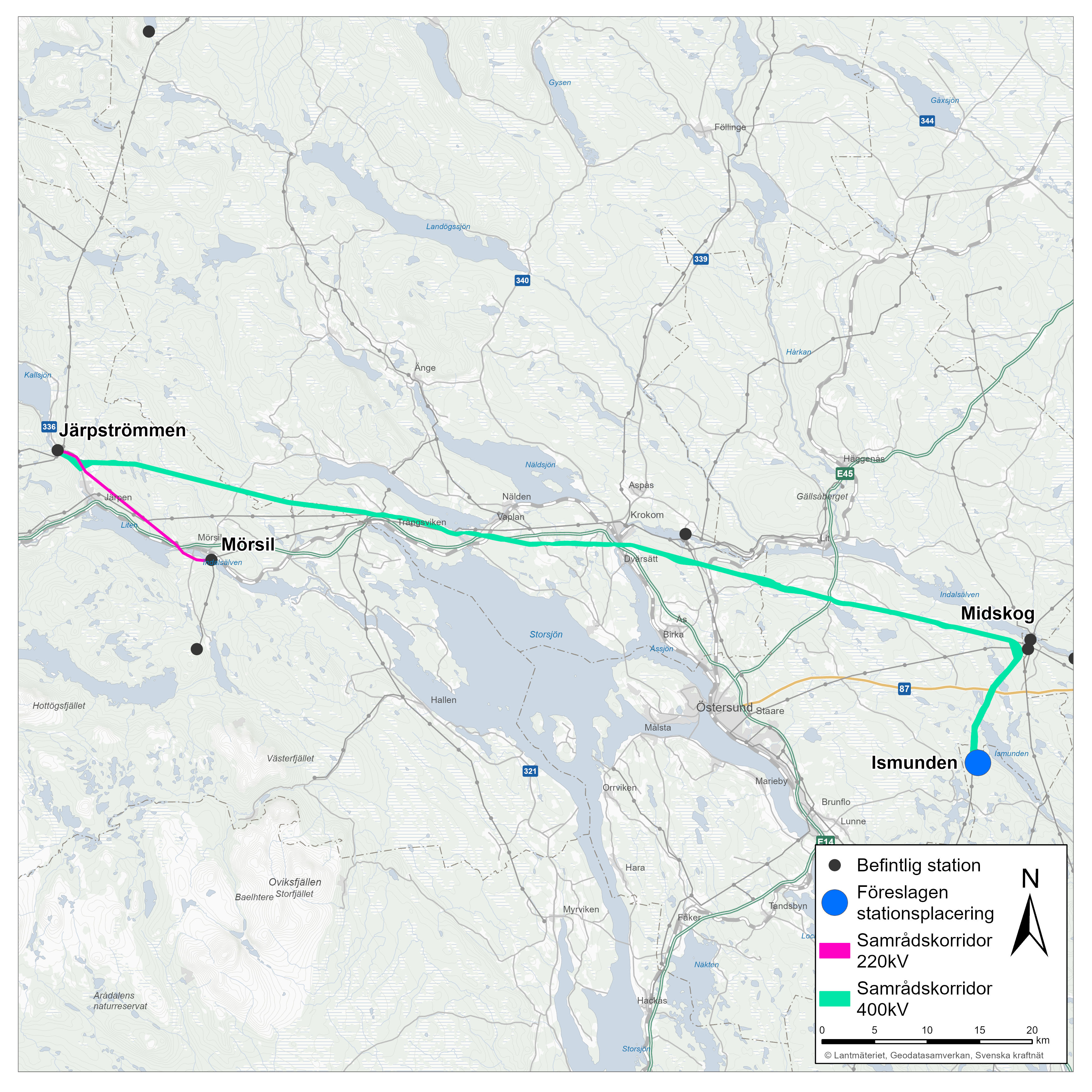Ismunden-Järpströmmen-Mörsil: Svenska kraftnät har valt korridorer för planeringen av förnyelsen av 220 kV-ledningen mellan Järpströmmen och Mörsil, och en ny 400 kV-ledning mellan Järpströmmen och Ismunden.