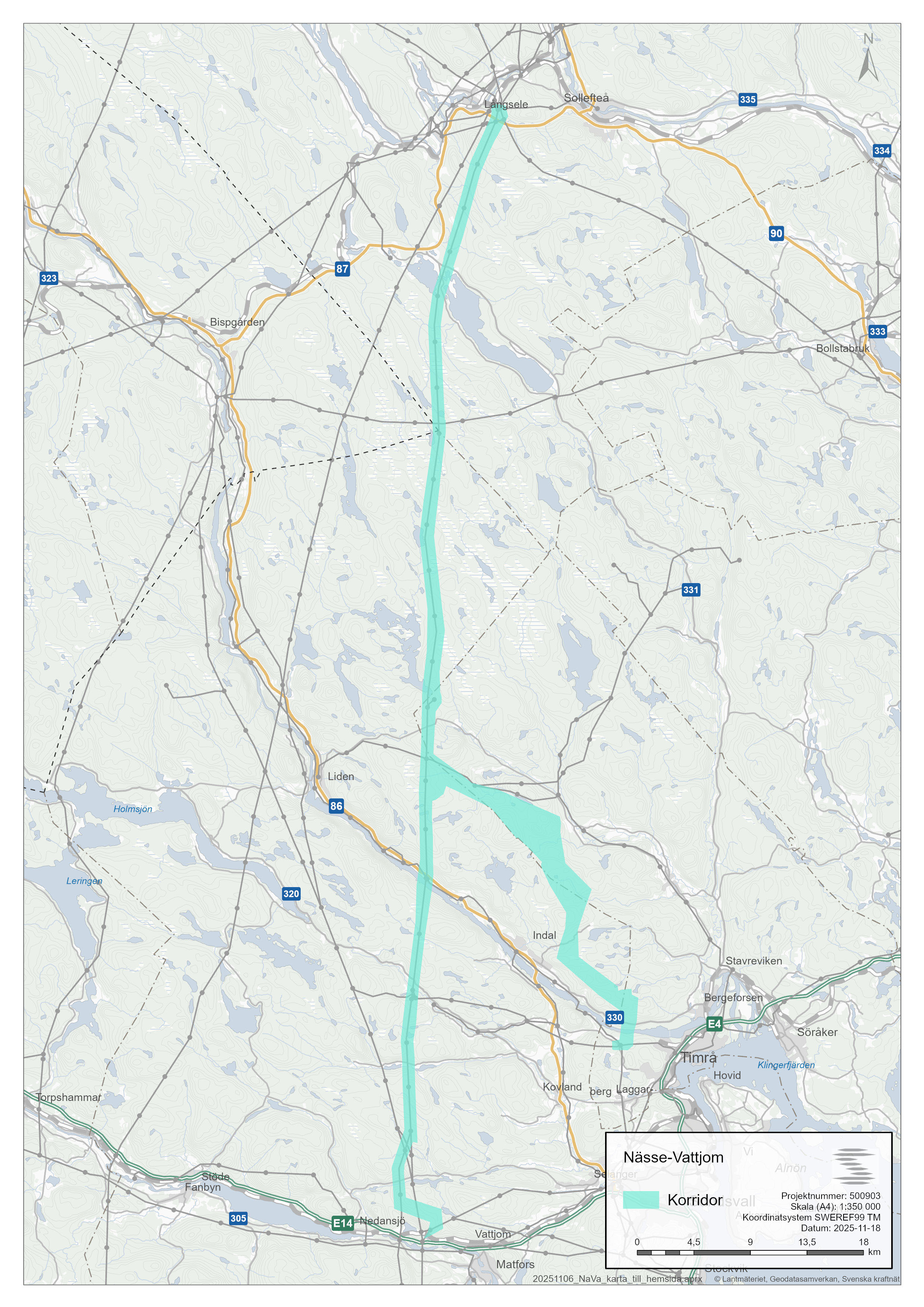 Som en del i Svenska kraftnäts största investeringspaket förstärker vi stamnätet med två nya 400 kV-ledningar mellan station Nässe i Sollefteå kommun och Vattjom i Sundsvalls kommun. Det görs för att stärka upp stamnätet, öka överföringskapaciteten och byta ut gamla ledningar som uppnått sin tekniska livslängd.
