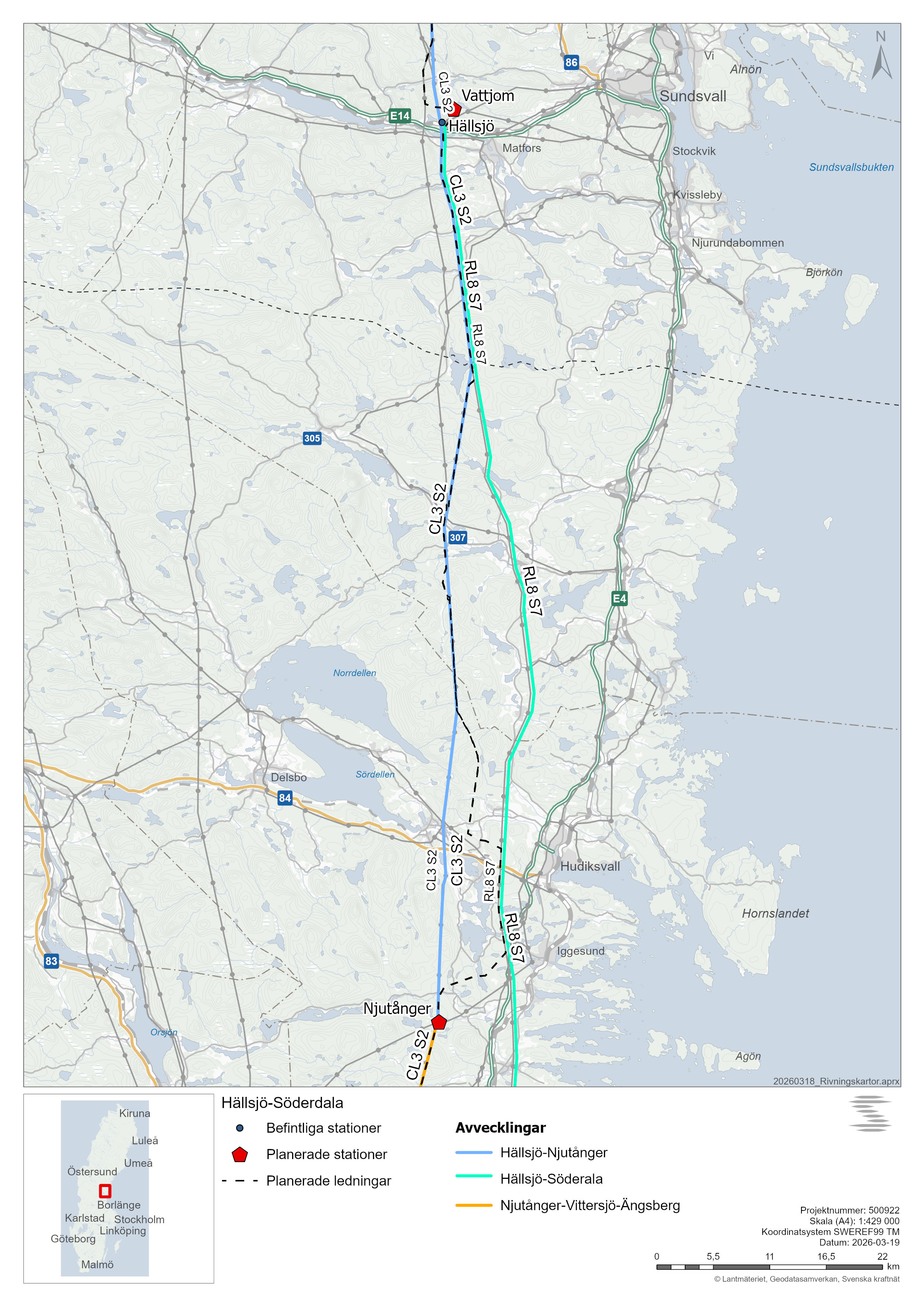 Svenska kraftnät avvecklar en äldre 220 kV-ledning mellan Hällsjö och Söderala. Sträckan är en egen del av Kustpaketet och har separat planering och tidplan.