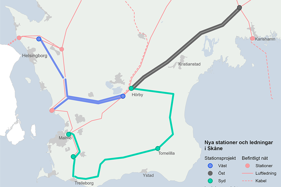 - Två nya 400 kV-stationer, Skåne Sydost och Skåne Nordost